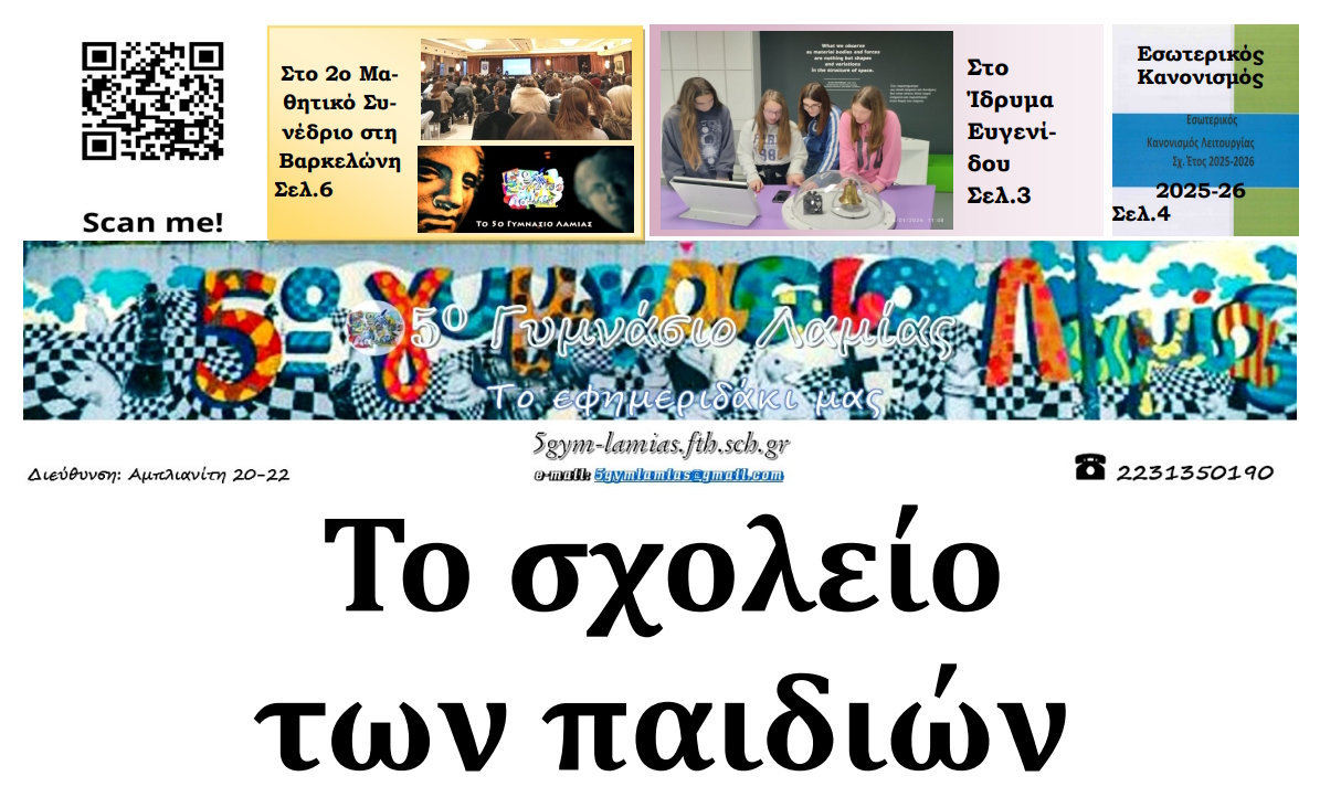 Με πλούσια θεματολογία και έντονο το στοιχείο της μαθητικής δημιουργικότητας κυκλοφόρησε το δεύτερο τεύχος της σχολικής εφημερίδας του 5ου Γυμνάσιο Λαμίας, παρουσιάζοντας δράσεις, εκδηλώσεις και πρωτοβουλίες της σχολικής κοινότητας.