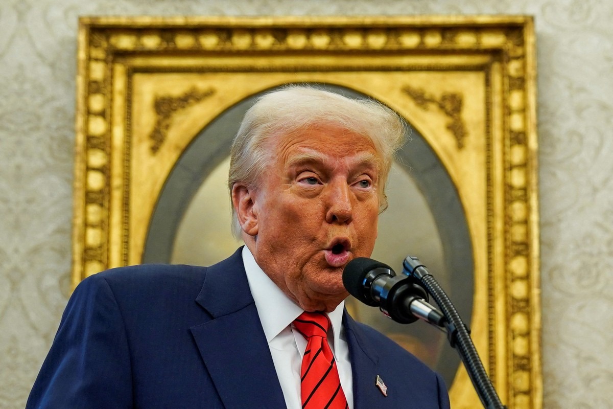 U.S. President Donald Trump speaks on the day of Pam Bondi's swearing in ceremony as U.S. Attorney General, at the White House in Washington, U.S., February 5, 2025. REUTERS/Kent Nishimura