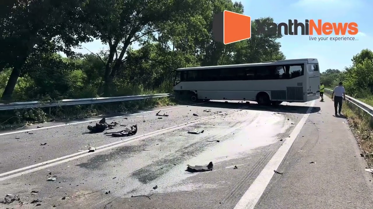 Την 16-6-2024 και ώρα 07.55΄, στο 11 ο χλμ της Eθνικής Oδού Ξάνθης – Καβάλας, Ι.Χ.Ε. αυτοκίνητο που οδηγούσε 26χρονος ημεδαπός και επέβαιναν ακόμη τέσσερα άτομα, συγκρούστηκε μετωπικά με Δ.Χ. λεωφορείο.