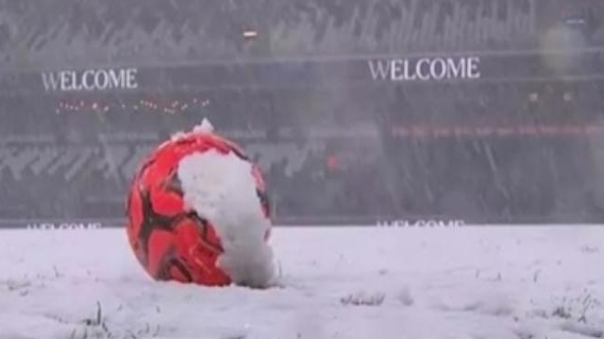 Τα βίντεο και οι φωτογραφίες που κυκλοφόρησαν στα social media δείχνουν τους οπαδούς και τους υπαλλήλους του γηπέδου να κάνουν μαζί τον καθαρισμό του χιονιού.