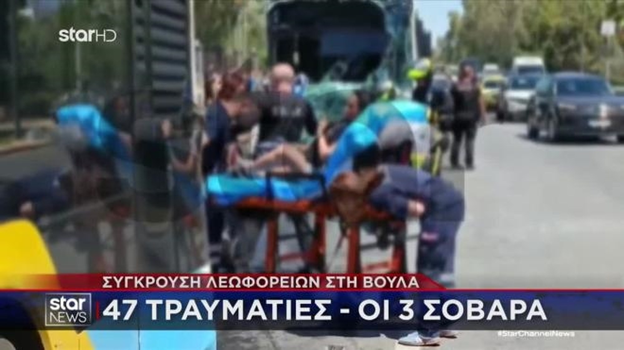 Τα δύο αστικά λεωφορεία συγκρούστηκαν με αποτέλεσμα 47 επιβάτες να τραυματιστούν, οι τρεις σοβαρά, μία 38χρονη γυναίκα με κάταγμα στη γνάθο, μια 70χρονη με κάταγμα στη μύτη, η οποία πρόκειται να υποβληθεί σε χειρουργική επέμβαση, καθώς και ένας 77χρονος άνδρας ο οποίος φέρει κατάγματα στο θώρακα.