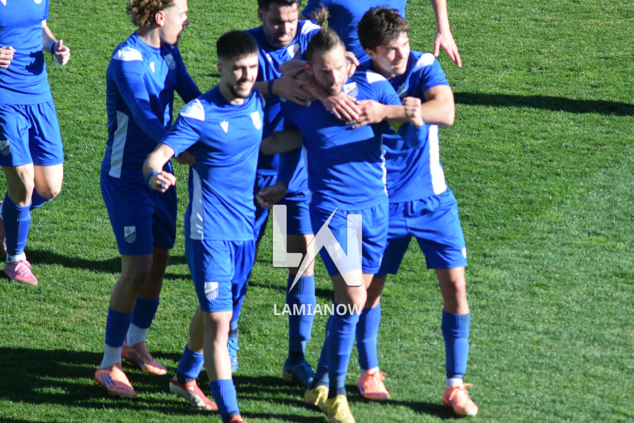 Στο 9’ ο Νίκος Ματθαίου βρήκε τον Βρέττα μέσα στην περιοχή, εκείνος σούταρε, όμως ο Παπαγιάννης κράτησε το μηδέν με τα πόδια. Η υπεροχή της Λαμίας καρποφόρησε στο 20’, όταν μετά από κόρνερ του Ντότη, ο Φράγκος πήρε την κεφαλιά, η μπάλα βρήκε και σε αντίπαλο και κατέληξε στα δίχτυα για το 1-0.