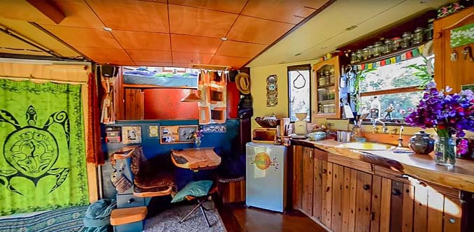 Όταν η οικογένεια κινείται, ολόκληρο το σπίτι τους μπορεί να «διπλωθεί»: η οροφή μαζεύεται και οι πύργοι μετακινούνται στις πλευρές του φορτηγού. Όταν αποφασίζουν να μείνουν σε ένα σημείο, το φορτηγό επεκτείνεται προσφέροντας αρκετό χώρο διαβίωσης.